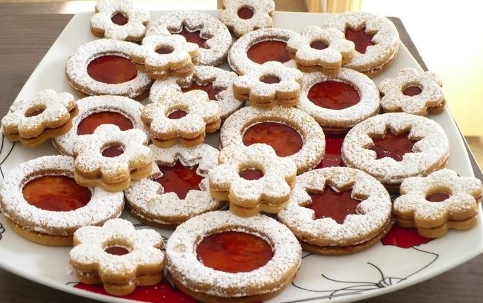800g hladké mouky, 500g másla, 350g práškového cukru, 2 žloutky, 1celé vejce, 1 vanilkový cukrNa vále vypracujeme obvyklým způsobem těsto, necháme odležet, rozválíme na placku a formičkami vykrajujeme kolečka nebo i jiné tvary. Pečeme v mírné troubě. Upečená a vychladlá kolečka slepíme k sobě marmeládou a poté posypeme cukrem.